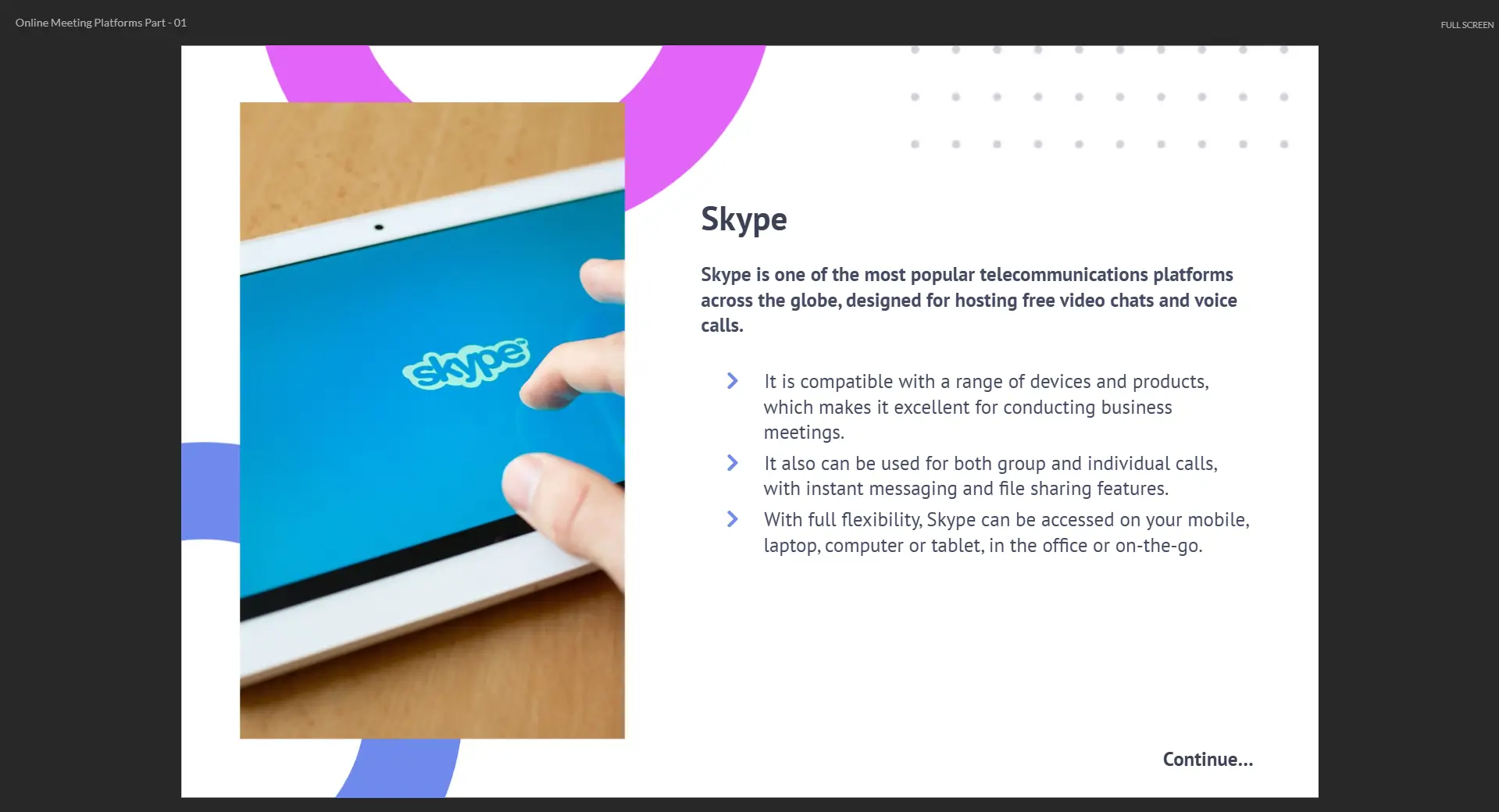 - Navigate various online meeting platforms proficiently.
