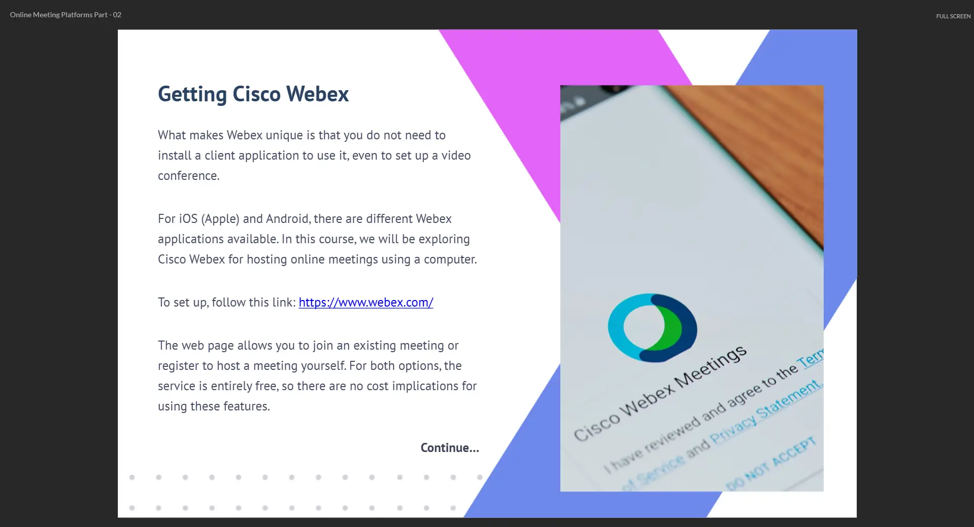 - Access to course content on mobile, tablet or desktop from anywhere, anytime;